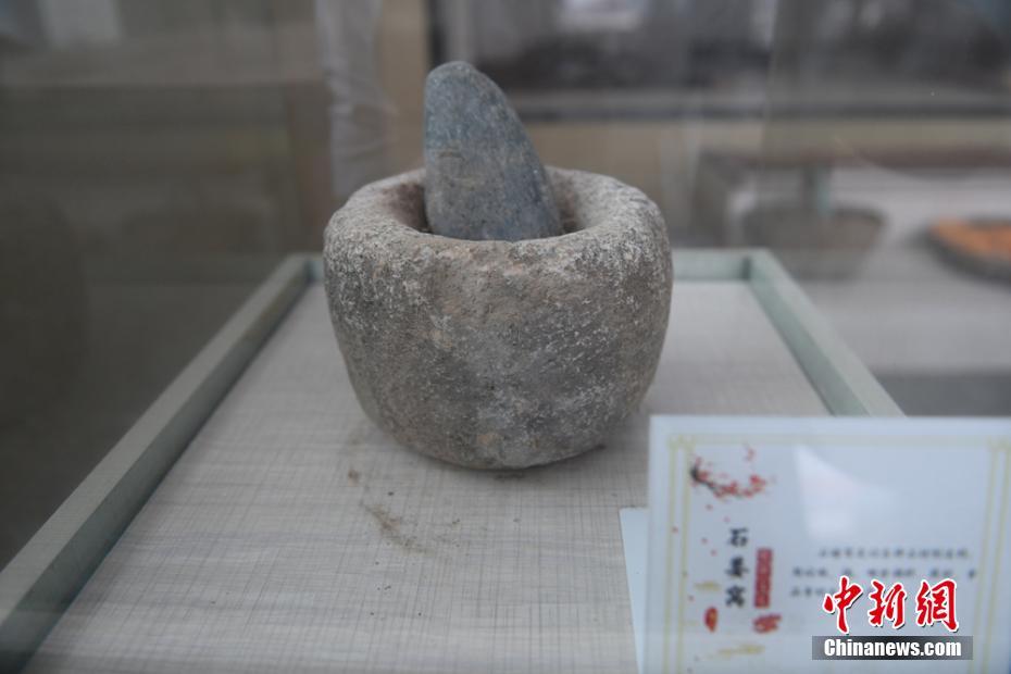 圖為鄉(xiāng)村農(nóng)耕博物館展柜里展示的石姜窩。