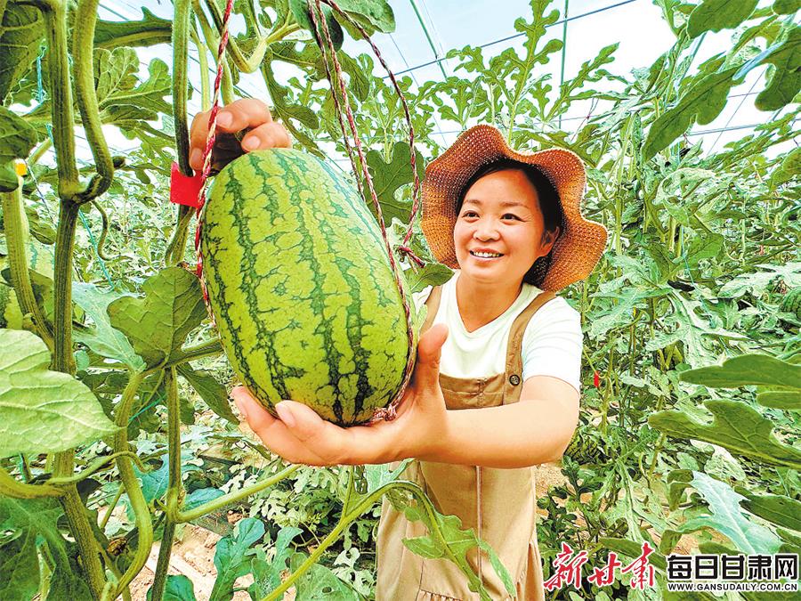 ▲涼州區(qū)大柳鎮(zhèn)村級(jí)集體經(jīng)濟(jì)產(chǎn)業(yè)園的西瓜喜獲豐收。