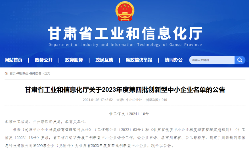據(jù)甘肅省工業(yè)和信息化廳消息