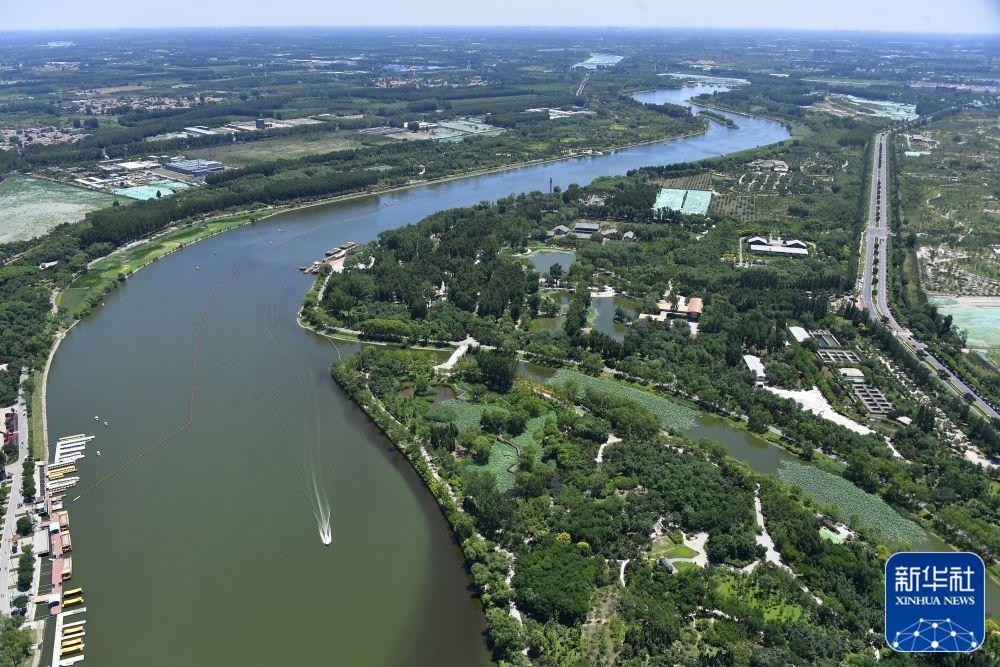 ↑這是位于北京市通州區(qū)的大運(yùn)河森林公園(2020年6月14日攝,無(wú)人機(jī)照片)。新華社發(fā)(常鳴 攝)