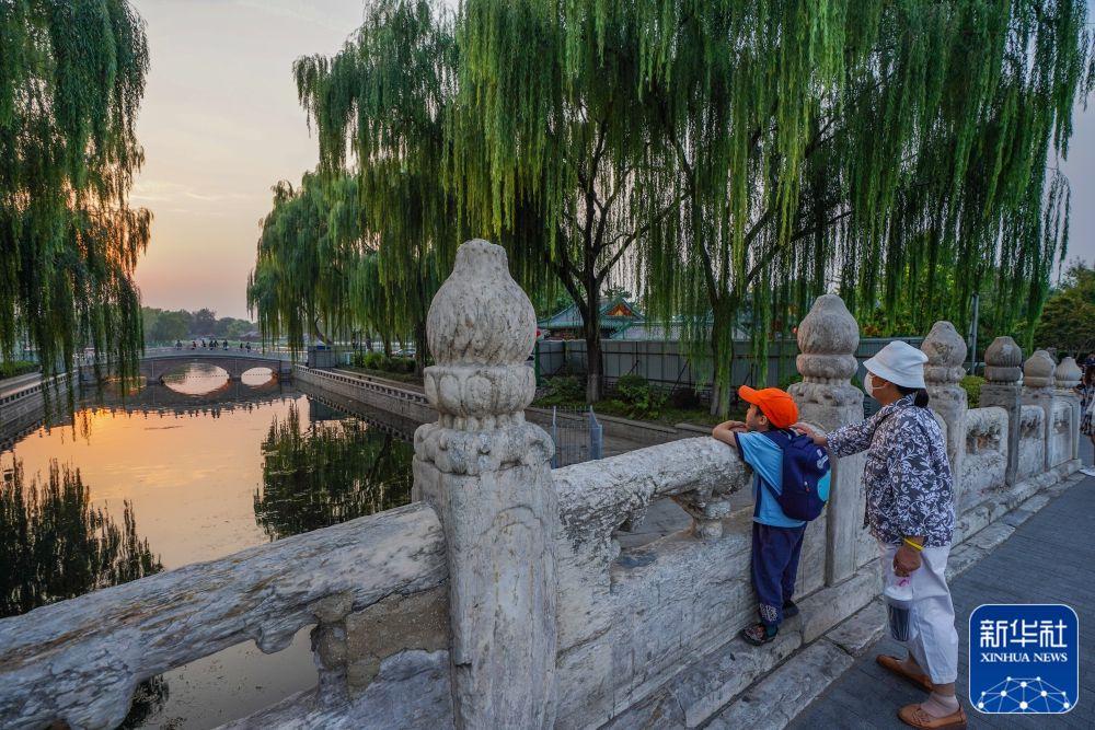 ↑市民在京杭大運(yùn)河和北京中軸線交匯點(diǎn)的萬(wàn)寧橋上眺望什剎海(2022年9月28日攝)。新華社記者 陳鐘昊 攝