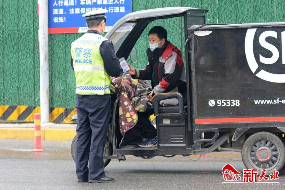 11月2日,秦州公安分局城區(qū)交警大隊(duì)的交通警察在秦州城區(qū)路段檢查車輛和行人的通行證、健康碼、核酸檢測(cè)記錄、工作證明。自11月1日零時(shí)起,秦州區(qū)實(shí)行臨時(shí)靜態(tài)管理,所有機(jī)動(dòng)車實(shí)行臨時(shí)交通管制。交警在各路段疫情防控點(diǎn)保障疫情防控、民生保供等車輛通行的同時(shí),核驗(yàn)出行車輛通行證、檢查機(jī)動(dòng)車駕駛員和行人的核酸檢測(cè)記錄、健康碼、工作證明,不符合疫情防控要求的一律勸返。