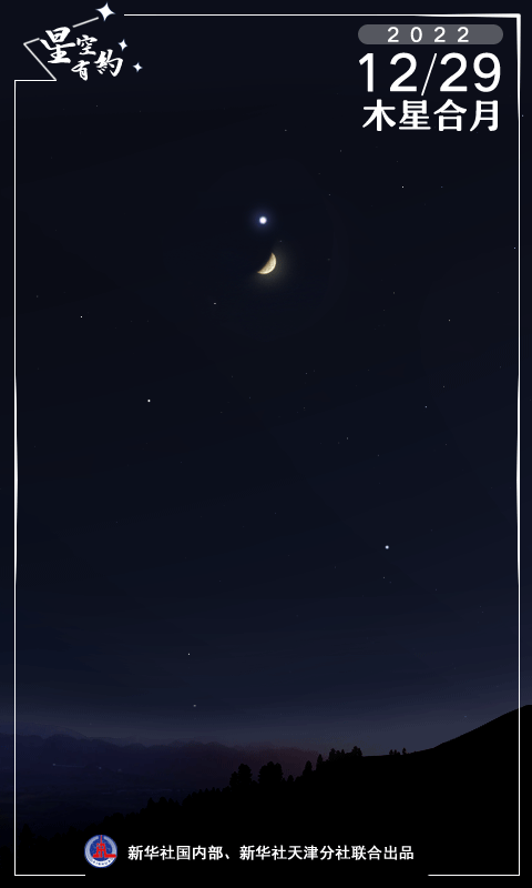 新華社天津12月27日電(記者周潤健)天文科普專家介紹,12月29日晚天宇將上演木星合月,這是2022年最后一場行星合月。屆時只要天氣晴好,我國公眾可在南方天空欣賞到明亮木星與一輪上弦月近距離競輝的唯美畫面。