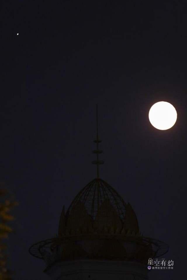 這是2022年9月11日晚在北京市豐臺區(qū)拍攝的木星合月。(新華社記者張鋮 攝)