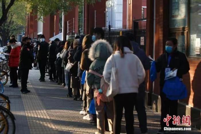 ▲資料圖:公務(wù)員考試考場外,工作人員核驗(yàn)考生信息。 中新社記者 蔣啟明 攝