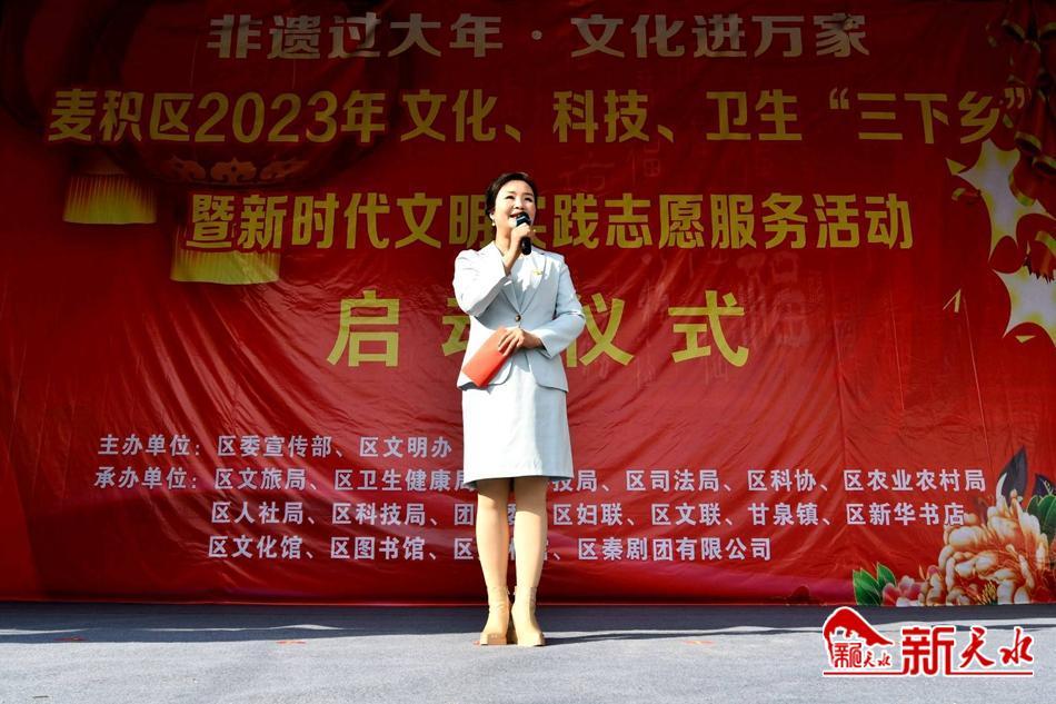 新天水訊【特約通訊員 竇耀輝】 1月9日,麥積區(qū)2023年文化科技衛(wèi)生“三下鄉(xiāng)”暨新時(shí)代文明實(shí)踐志愿服務(wù)活動(dòng)啟動(dòng)儀式在甘泉鎮(zhèn)舉行。