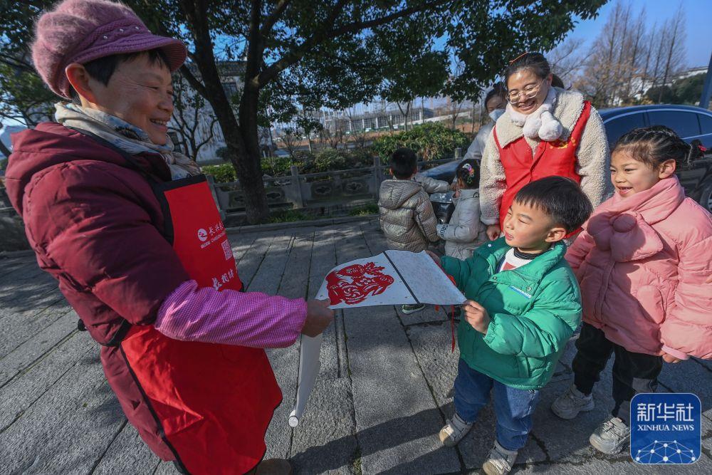 臨近春節(jié),浙江省湖州市長興縣李家巷鎮(zhèn)中心幼兒園的教師志愿者帶領孩子開展以“巧手剪紙迎兔年”為主題的迎新年民俗活動。孩子們在老師的指導下剪出各種福兔剪紙,并將福兔剪紙作品送到周邊村民手中,表達辭舊迎新的美好愿望。