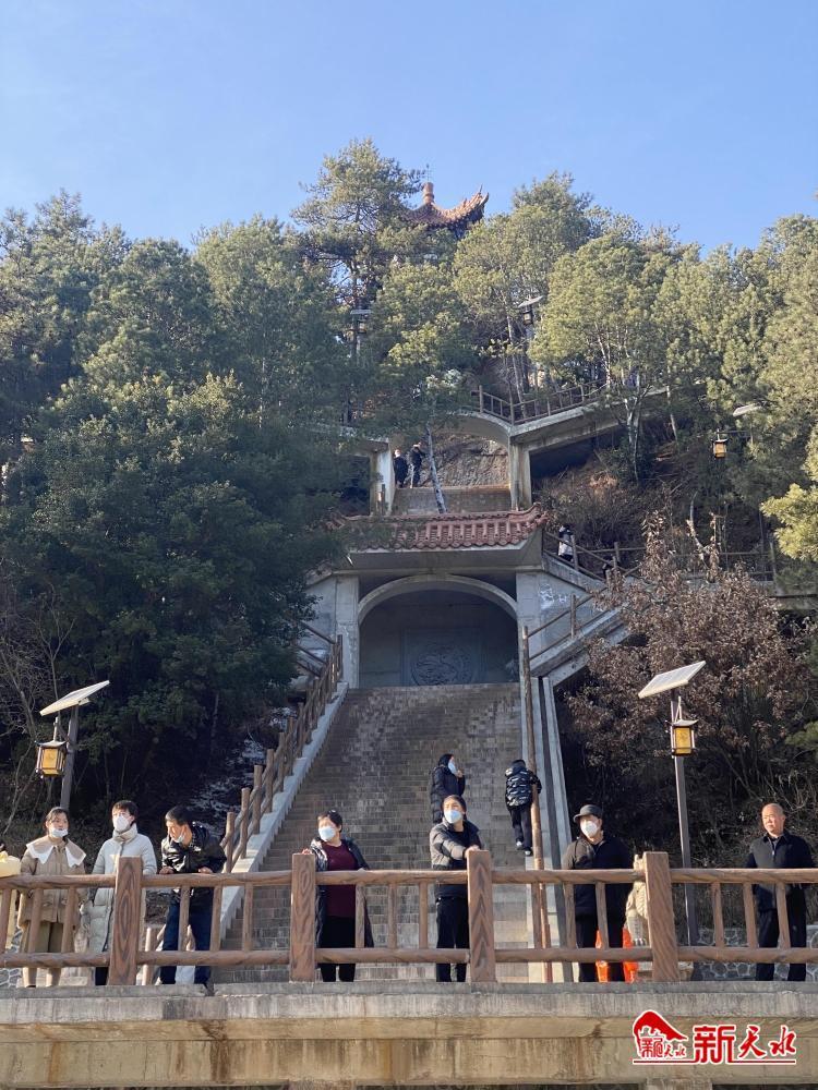 新天水訊【記者甄娜】1月22日,正值大年初一,天空晴朗,位于麥積區(qū)的凈土寺車流攢動(dòng),賓客如云。登上較高一處大殿,轉(zhuǎn)身放目望去,山谷起伏深邃,廟宇層出不窮,猶如一幅意境高明的山水畫軸,不時(shí)傳來的鐘聲,讓喧鬧繁雜的人們感受到一絲絲寧靜。甘露池已經(jīng)結(jié)冰,不過,白色的冰凍池面“開封”的一處,各色魚兒暢游其中,吸引了許多游人跓足欣賞。