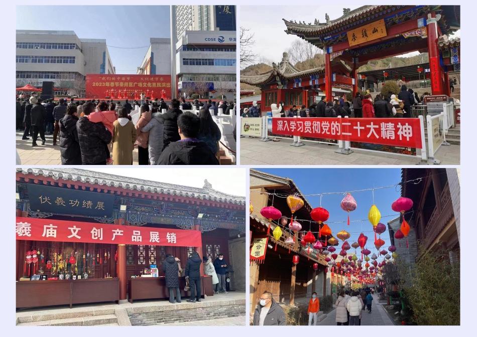 全市文旅系統(tǒng)圍繞“文化進(jìn)萬家 旅游迎新春”主題,策劃舉辦8個板塊148項春節(jié)重點(diǎn)文化活動,包含文藝展演、展示展覽、社火匯演、燈謎競猜、惠民演出、主題社教、書香過大年、非遺過大年等活動。成功舉辦了“起航新天水 幸福天水年”天水市2023年春節(jié)聯(lián)歡晚會、“我們的中國夢·文化進(jìn)萬家”廣場文化惠民演出、優(yōu)秀秦腔劇目名家專場演出等活動。秦州區(qū)“龍城舞動中國龍·祈福納祥迎新春”首屆舞龍文化藝術(shù)節(jié)、猜燈謎、社火等群眾文化活動輪番登場,營造出濃濃年味,讓廣大群眾過上了一個豐富多彩的“文化年”。