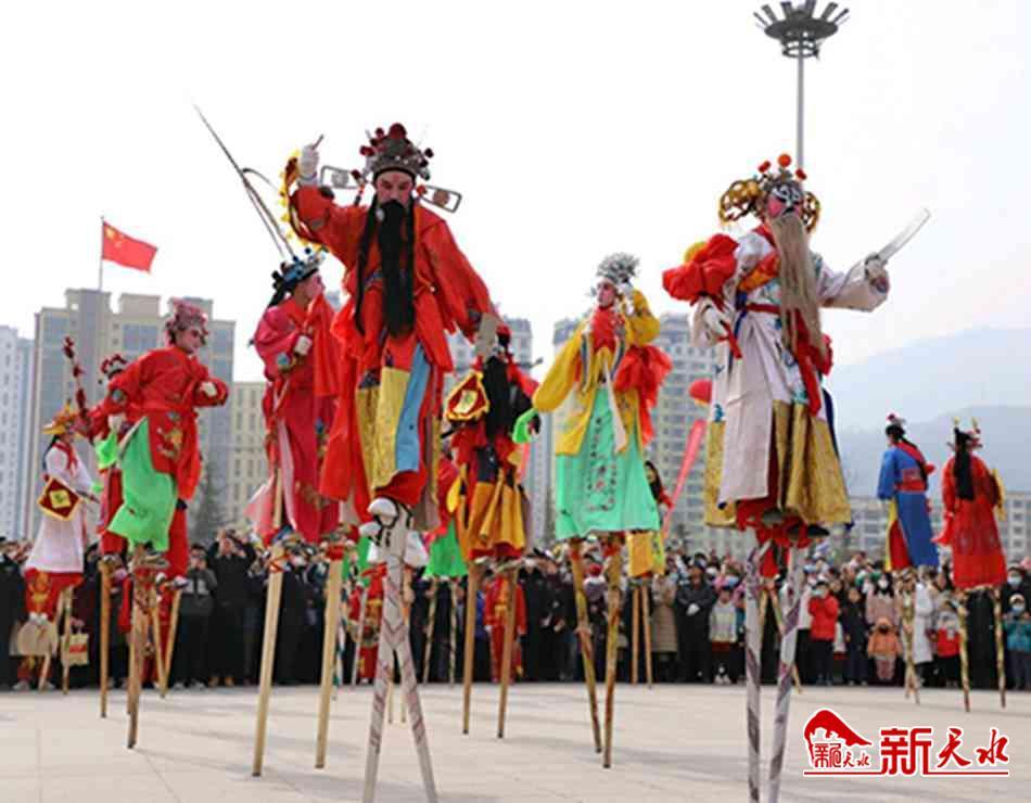 新天水訊 熱鬧的秧歌扭起來,歡快的高蹺踩起來。2月2日,正月十二,來自武山縣灘歌鎮(zhèn)盧坪村的旋鼓舞、高蹺、馬排子等秧歌一路歡歌而來,匯聚武山人民廣場進行民俗文化展演。