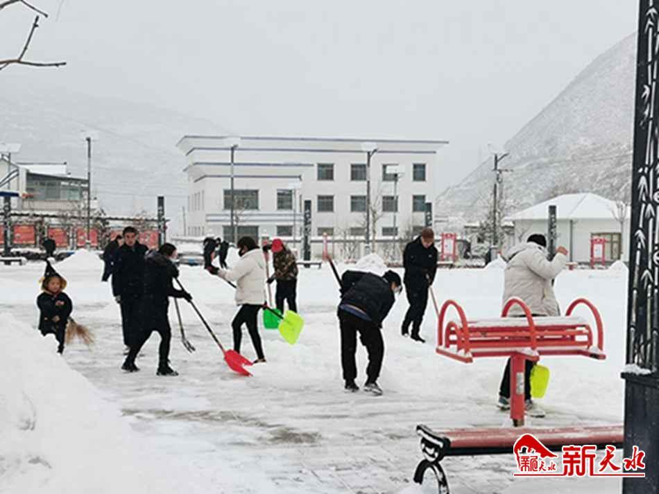 新天水訊 2月13日,武山縣楊河鎮(zhèn)各村黨支部組織廣大黨員干部群眾、志愿者,以雪為令、聞雪而動,大家相互配合、齊心協(xié)力,揮動掃把、鐵鍬,并肩奮戰(zhàn),全力清除路面積雪,吹響了掃雪除冰“進行曲”。
