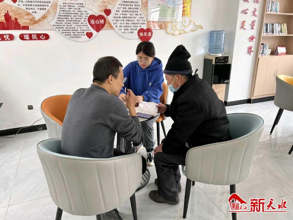 新天水訊 2月20日,企業(yè)退休的老黨員張保林走進(jìn)甘谷縣大像山鎮(zhèn)東關(guān)社區(qū)便民服務(wù)大廳,準(zhǔn)時(shí)向組織繳納黨費(fèi)。