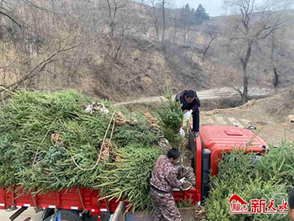 新天水迅 陽(yáng)春三月,生機(jī)勃勃,綠染大地。3月20日至22日,在張家川縣劉堡鎮(zhèn)鄭溝村至蘆科村的公路沿線、溝渠路邊,隨處可見(jiàn)挖穴栽樹(shù)、澆水封土的身影。新栽的樹(shù)苗新芽萌動(dòng),路旁的綠樹(shù)涂紅抹白,成為美麗鄉(xiāng)村一道靚麗的風(fēng)景。