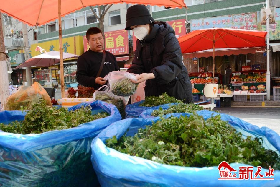 3月28日上午,記者在秦州區(qū)堅(jiān)家河菜市場看到,各類新鮮野菜齊上市,薺薺菜、五葉菜……種類繁多。而在秦州區(qū)光明巷菜市場,同樣有野菜出售,不過相對(duì)價(jià)格略高一點(diǎn)。記者詢問得知,薺薺菜每斤4元,苜蓿每斤20元、五葉菜每斤38元左右?!?strong>新天水記者常亮 攝