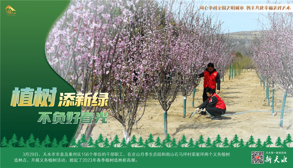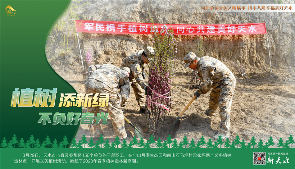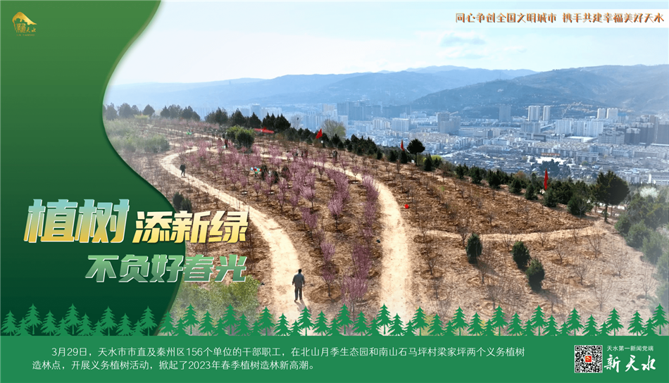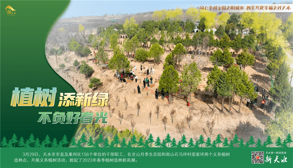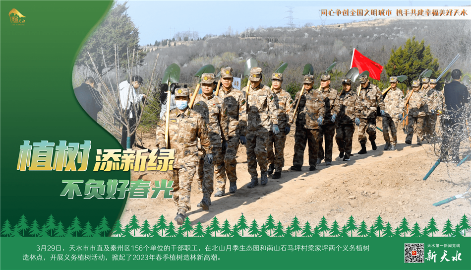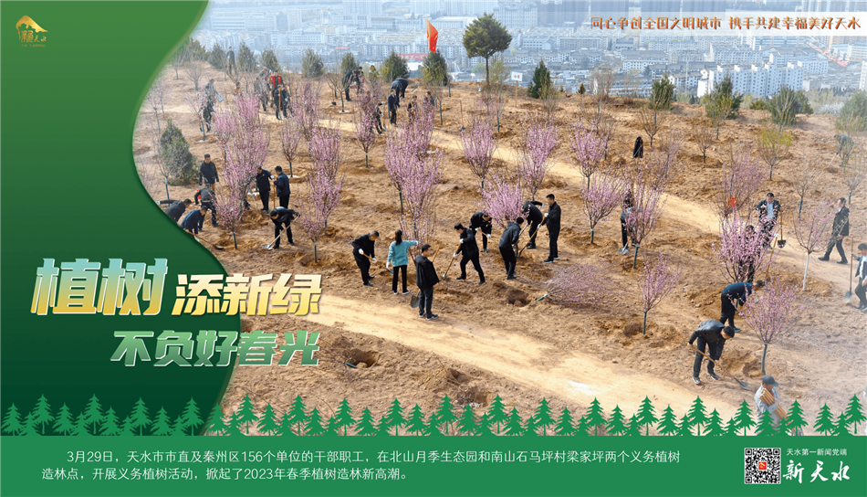 陽春三月,春風(fēng)吐綠,草木初蔭,正是植樹綠化好時(shí)節(jié)。3月29日,天水市市直及秦州區(qū)156個(gè)單位的干部職工,在北山月季生態(tài)園和南山石馬坪村梁家坪兩個(gè)義務(wù)植樹造林點(diǎn),開展義務(wù)植樹活動(dòng),掀起了2023年春季植樹造林新高潮。