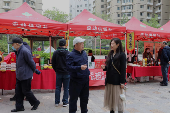 這個小區(qū)周邊有很多生活超市、社區(qū)集市,但流動供銷社的帳篷就扎在小區(qū)內(nèi)。別看只隔了一扇門,省了幾步路,對消費者來說還是方便了不少,很多習慣了網(wǎng)購的年輕人都愿意下樓湊個熱鬧。小區(qū)定期還有新發(fā)地菜市場來擺攤,生意同樣很好。這說明只要離消費者近一點,哪怕就一點,都是優(yōu)勢。