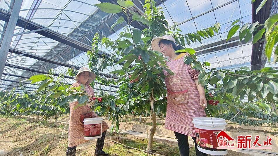 “今天剛上市,要摘200斤,這個星期都要采摘大櫻桃,我干了兩年了,一天工資100元?!眲?wù)工人員鄭康蘭說。
