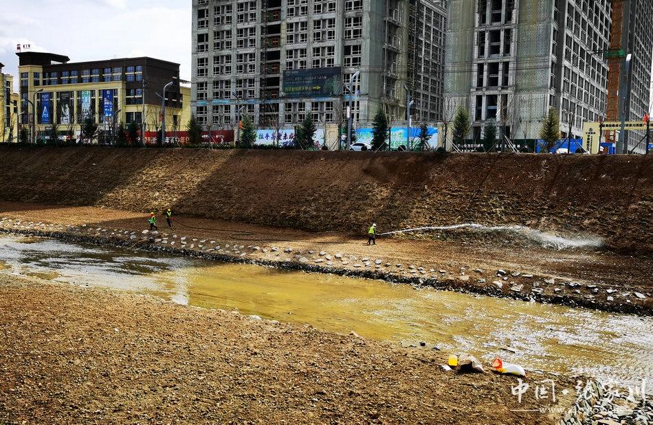 “河清兩岸闊,春光一片明?!迸c西城中學(xué)項(xiàng)目相距不遠(yuǎn)處,市政綠化和河道治理工程同步開展。