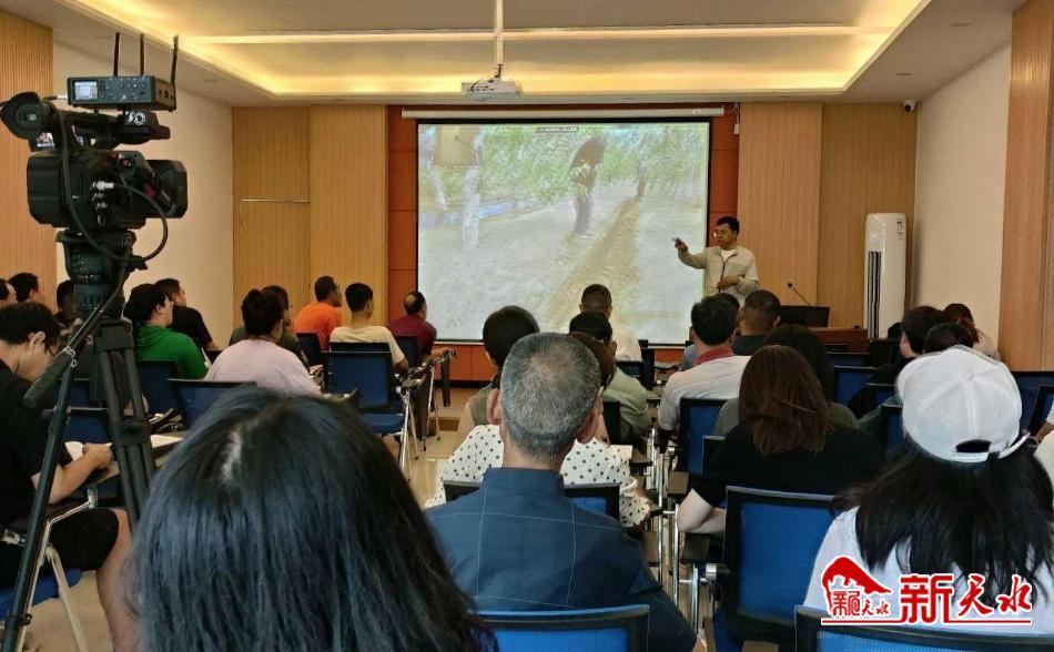 新天水訊 7月12日,秦安縣郭嘉鎮(zhèn)開展蘋果園提質(zhì)增效技術(shù)培訓(xùn),邀請國家蘋果產(chǎn)業(yè)技術(shù)體系平?jīng)鼍C合試驗站站長、甘肅省農(nóng)科院馬明研究員,講授了《甘肅蘋果優(yōu)質(zhì)高效栽培技術(shù)的理論與實踐》。