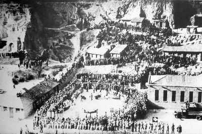 1943年春節(jié)延安各地秧歌隊到楊家?guī)X為中央機關拜年