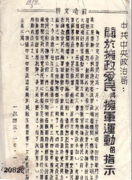 1943年10月1日,中共中央政治局頒布《關于擁政愛民與擁軍運動的指示》決定,以后每年的農(nóng)歷正月都要舉行一次擁政和擁軍的大規(guī)模群眾運動。