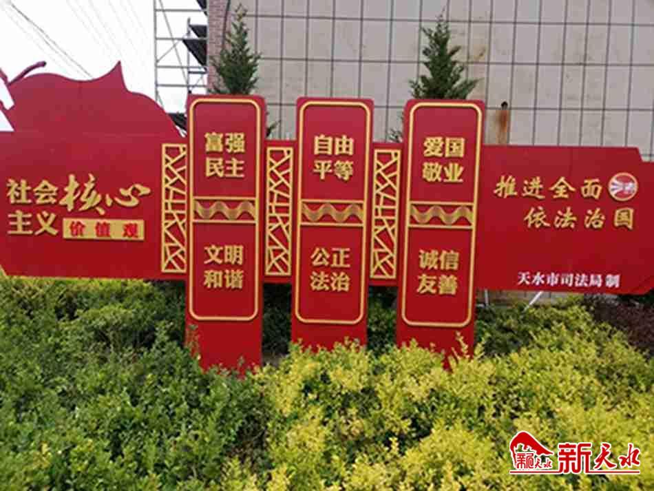 新天水訊 為大力弘揚法治精神,切實增強全民法治觀念,營造濃厚的法治氛圍,今年以來,天水市司法局、張家川縣司法局聯(lián)合在張家川縣胡川鎮(zhèn)張堡村精心設計打造了法治文化廣場。