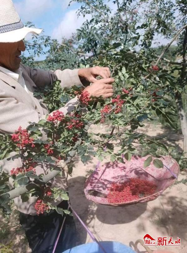 新天水訊   一抹紅顏經(jīng)天地,串串花椒掛樹(shù)梢。今年,甘谷縣西坪鎮(zhèn)的萬(wàn)畝花椒迎來(lái)了大豐收,走進(jìn)上硬王村,只見(jiàn)花椒樹(shù)枝繁葉茂,椒香撲鼻,頗具詩(shī)景畫(huà)意,一幅豐收的景象映入眼簾。