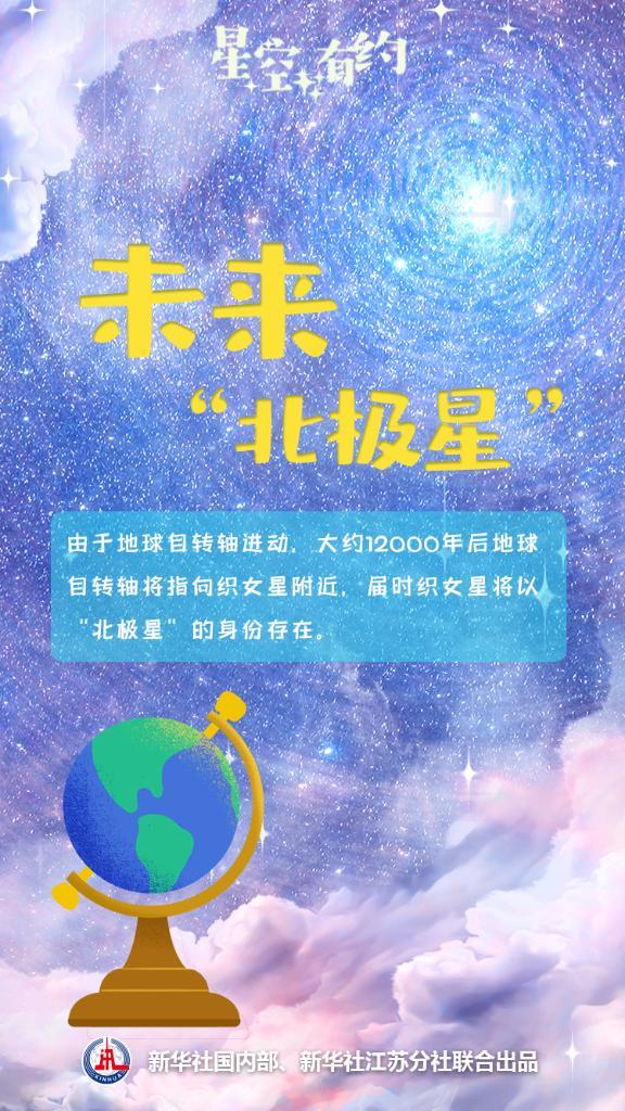 值得一提的是,作為北半球第二明亮的恒星,織女星在大約14000年前曾是我們的“北極星”。由于地球自轉(zhuǎn)軸進(jìn)動(dòng),大約12000年后,地球自轉(zhuǎn)軸將再次指向織女星附近。屆時(shí)這顆亮星與地軸相距約5度,將再次以“北極星”的身份存在,成為史上最明亮的“北極星”。