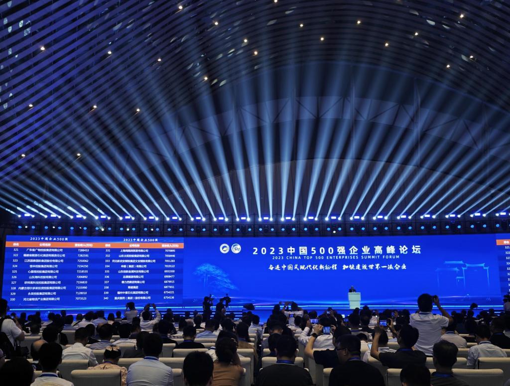 中國企業(yè)聯(lián)合會、中國企業(yè)家協(xié)會20日在安徽合肥發(fā)布“2023中國企業(yè)500強(qiáng)”。新華社記者王希 攝