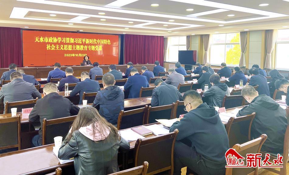 新天水訊【記者 李欣桐】10月23日下午,市政協(xié)黨組書記、主席王燕在市政協(xié)機(jī)關(guān)作了學(xué)習(xí)貫徹習(xí)近平新時(shí)代中國特色社會(huì)主義思想主題教育專題黨課輔導(dǎo)。市政協(xié)副主席馬勤學(xué)、崔玉軍、何寶平、羅增芳、范多智,市政協(xié)黨組成員、秘書長候選人馬小龍,黨組成員賈忠慧和機(jī)關(guān)全體干部職工聽課。
