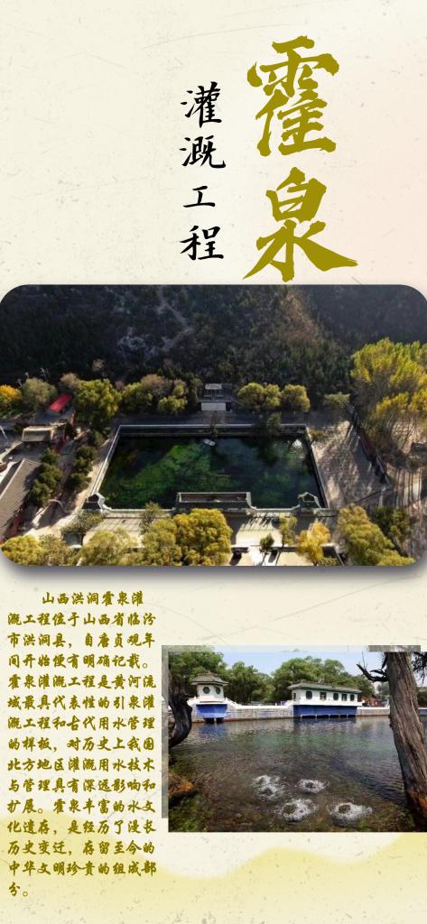 安徽七門堰調(diào)蓄灌溉系統(tǒng)、江蘇洪澤古灌區(qū)、山西霍泉灌溉工程、湖北崇陽(yáng)縣白霓古堰成功入選