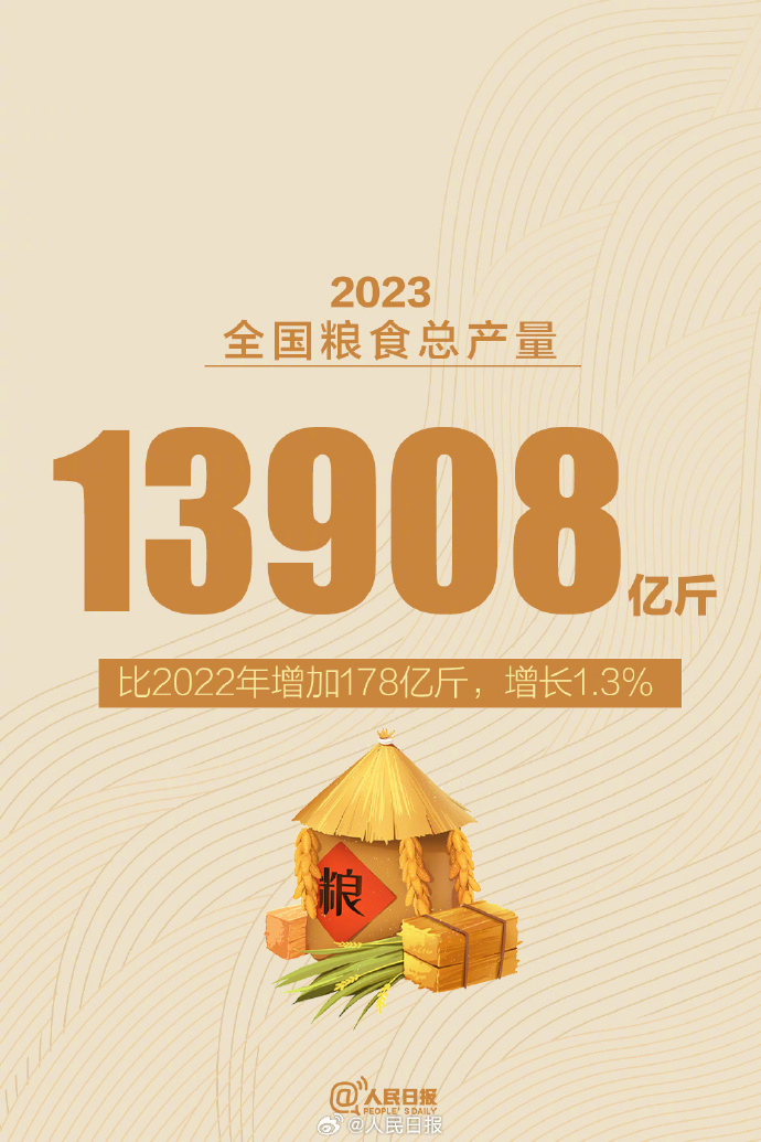 再創(chuàng)新高!2023年全國(guó)糧食總產(chǎn)量13908億斤