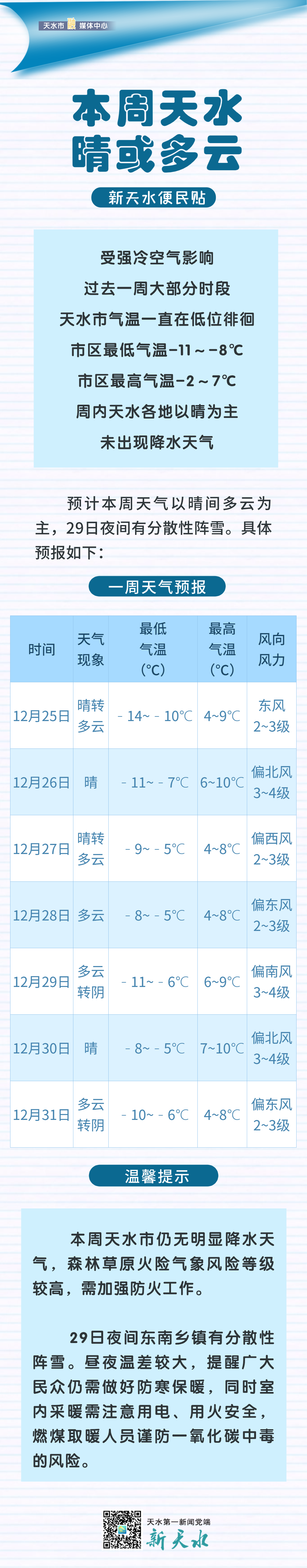 【新天水便民貼】本周天水晴或多云