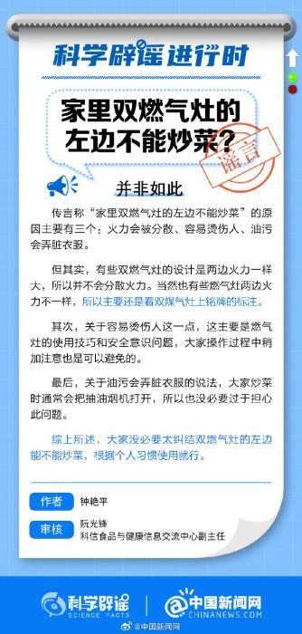 中新網(wǎng)1月3日電 傳言稱“家里雙燃?xì)庠畹淖筮叢荒艹床恕钡脑蛑皇腔鹆环稚?。但實際上,不少雙燃?xì)庠畹脑O(shè)計是兩邊火力一樣大的,并不會分散火力。大家沒必要太糾結(jié)雙燃?xì)庠畹淖筮吥懿荒艹床?,根?jù)個人習(xí)慣使用就行。(來源:@科學(xué)辟謠 中國新聞網(wǎng)微博)