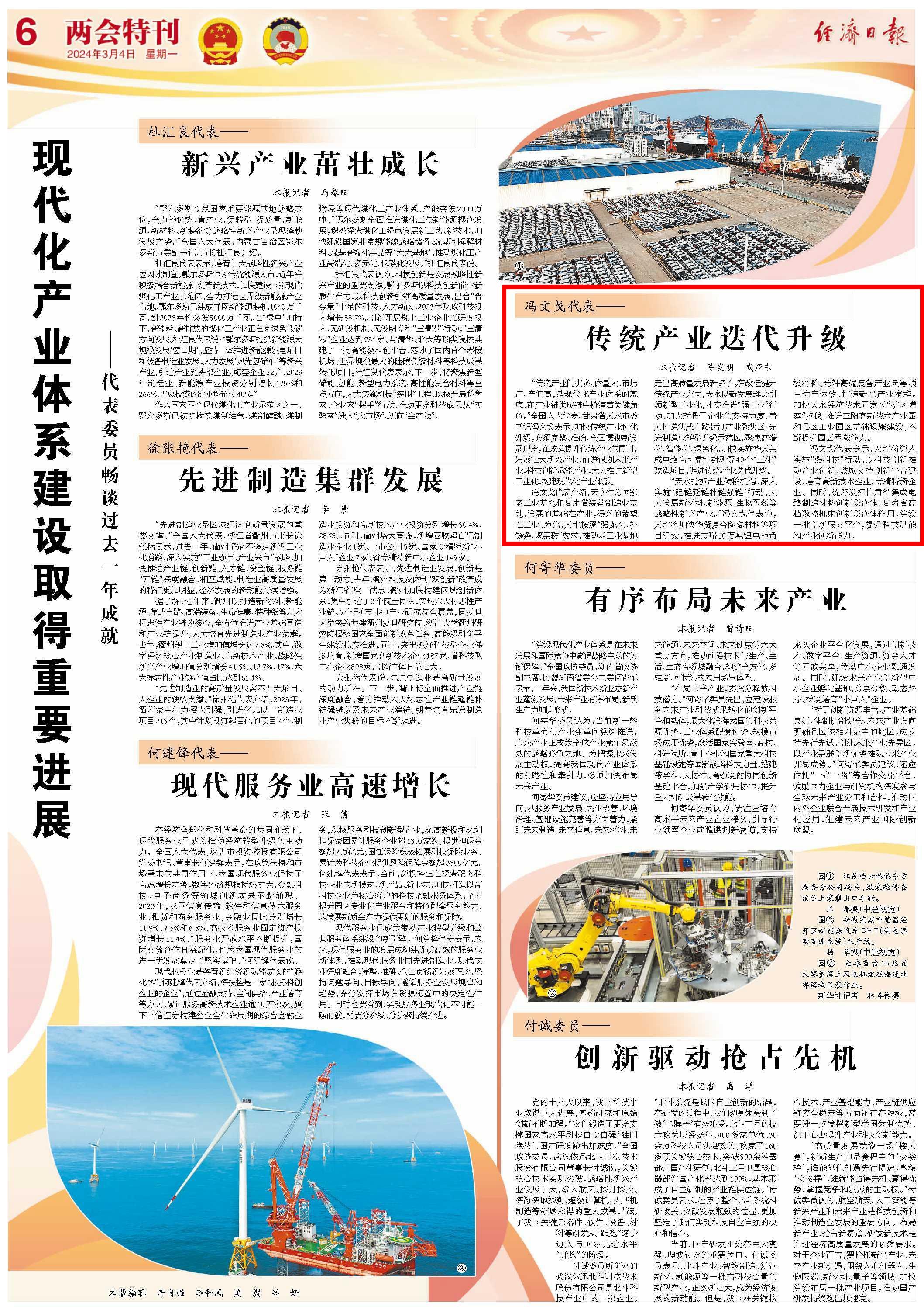 經(jīng)濟(jì)日?qǐng)?bào) | 全國人大代表、天水市委書記馮文戈:傳統(tǒng)產(chǎn)業(yè)迭代升級(jí)