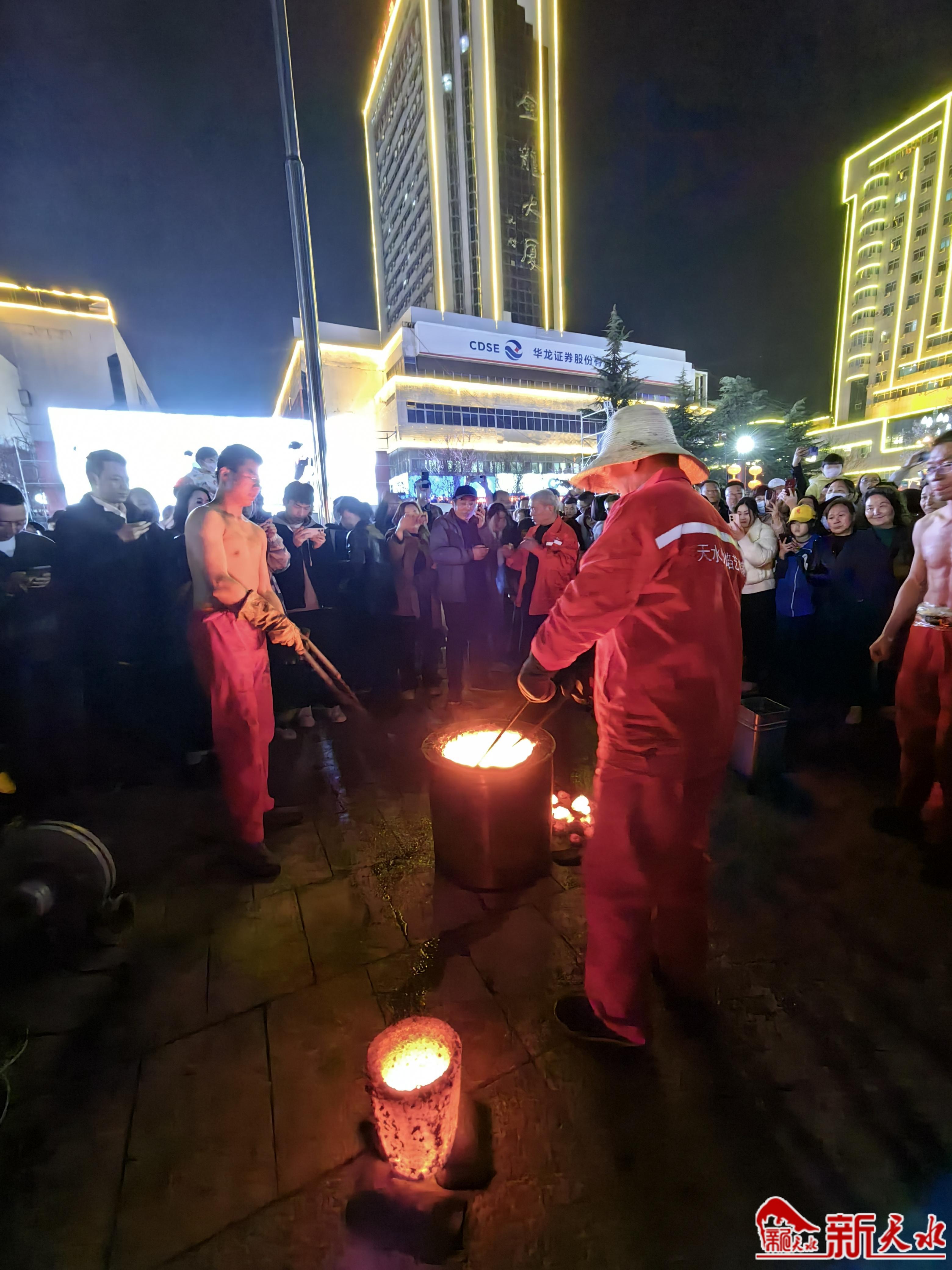 新天水訊【記者范少杰】3月28日晚,天水市龍城廣場(chǎng)舉行了規(guī)模盛大的“打鐵花”表演,精彩的表演讓現(xiàn)場(chǎng)數(shù)千名觀眾直呼大飽眼福。