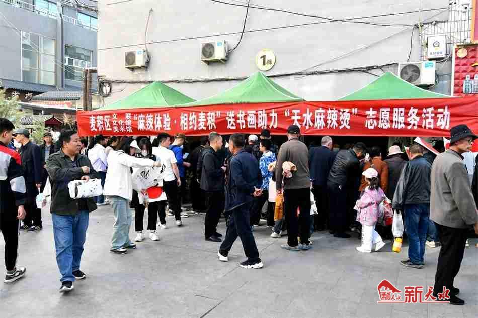 新天水訊【特約通訊員 竇耀輝】3月30日,麥積區(qū)文聯(lián)、區(qū)文化館、區(qū)美術(shù)館聯(lián)合開展“體驗(yàn)麻辣·相約麥積”送書畫助力“天水麻辣燙”志愿服務(wù)活動。