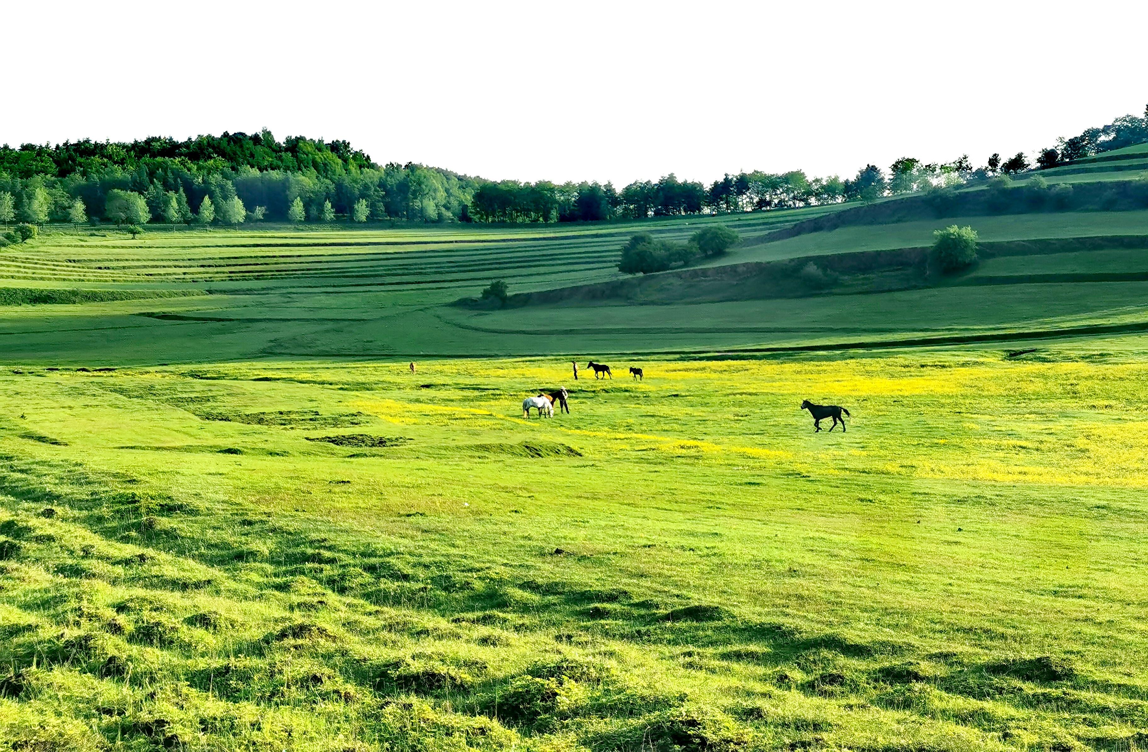 春日的非子牧場(chǎng)水草豐美、廣袤無(wú)垠的草原無(wú)限延伸,駿馬散落其間悠閑自在地吃草,游人策馬揚(yáng)鞭、最是瀟灑恣意,構(gòu)成一幅風(fēng)光旖旎的原生態(tài)牧場(chǎng)畫(huà)卷。