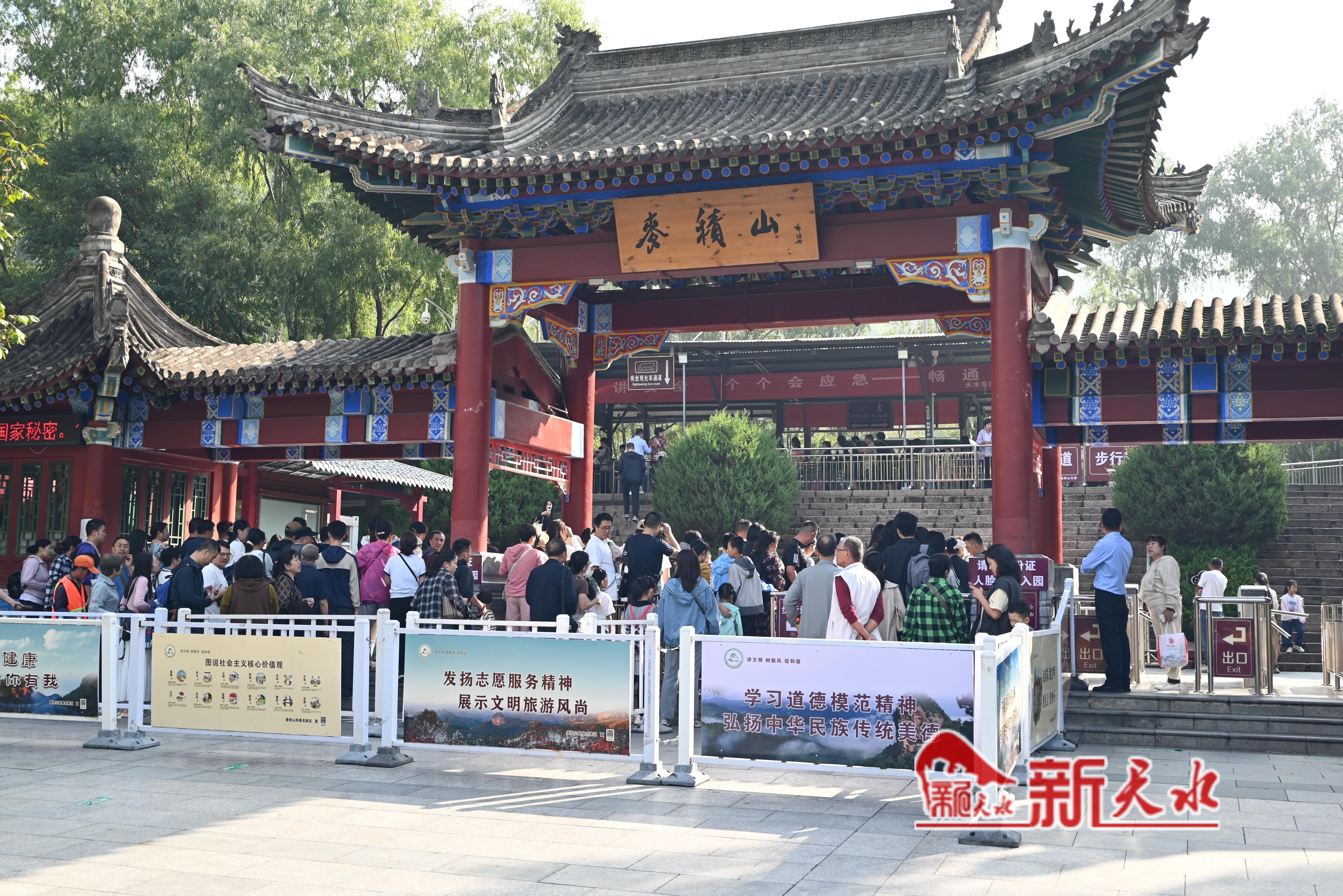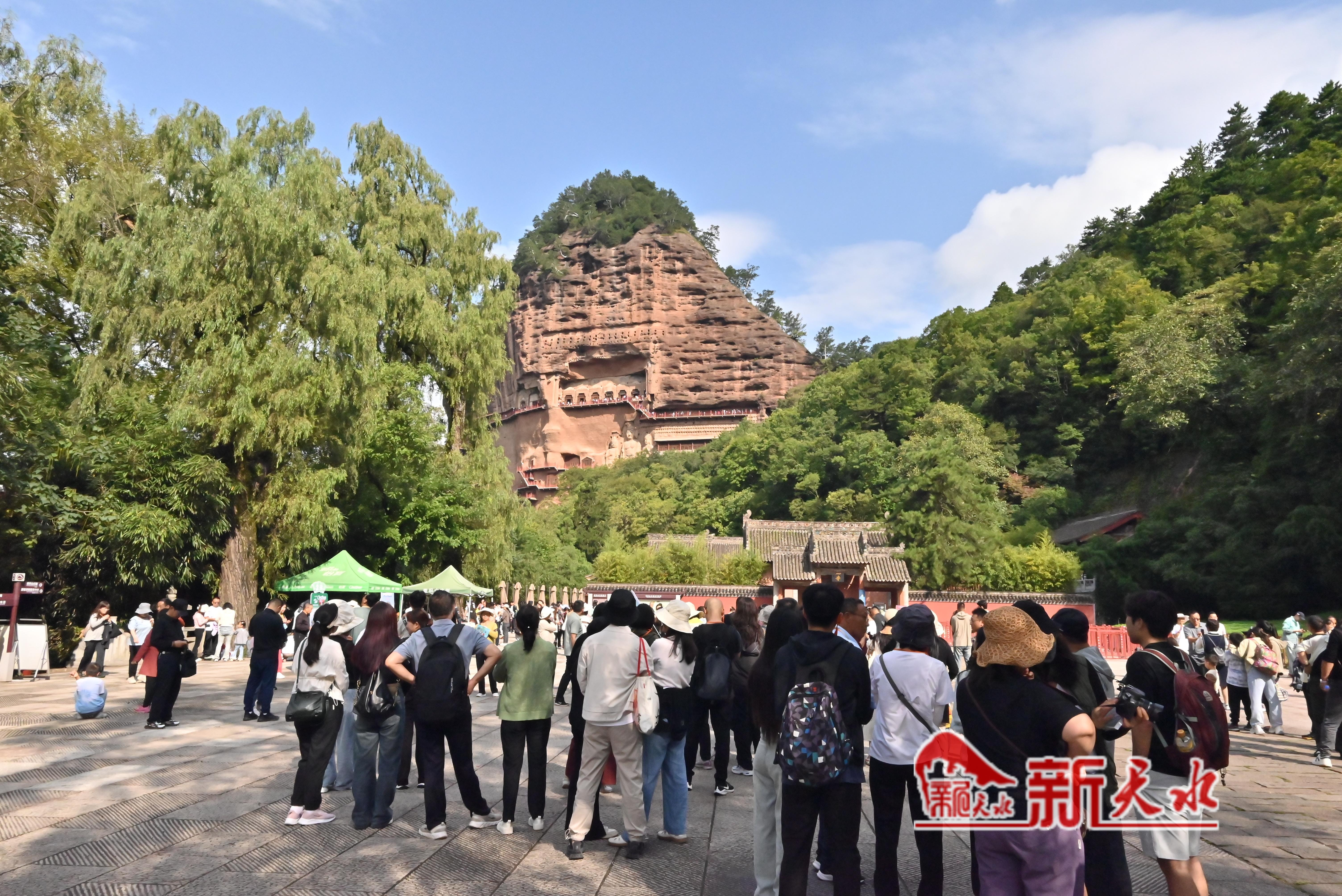 新天水訊【記者曹潤(rùn)彬 樓劍平】中秋佳節(jié),秋風(fēng)送爽,麥積山大景區(qū)迎來(lái)了一波中秋旅游高峰。隨著今年“天水麻辣燙”的持續(xù)走紅,麥積山石窟被更多人關(guān)注,以其精美的泥塑藝術(shù)和深厚的歷史文化底蘊(yùn),在中秋小長(zhǎng)假期間吸引了全國(guó)各地的游客前來(lái)參觀游覽,留下一段難忘的中秋記憶。