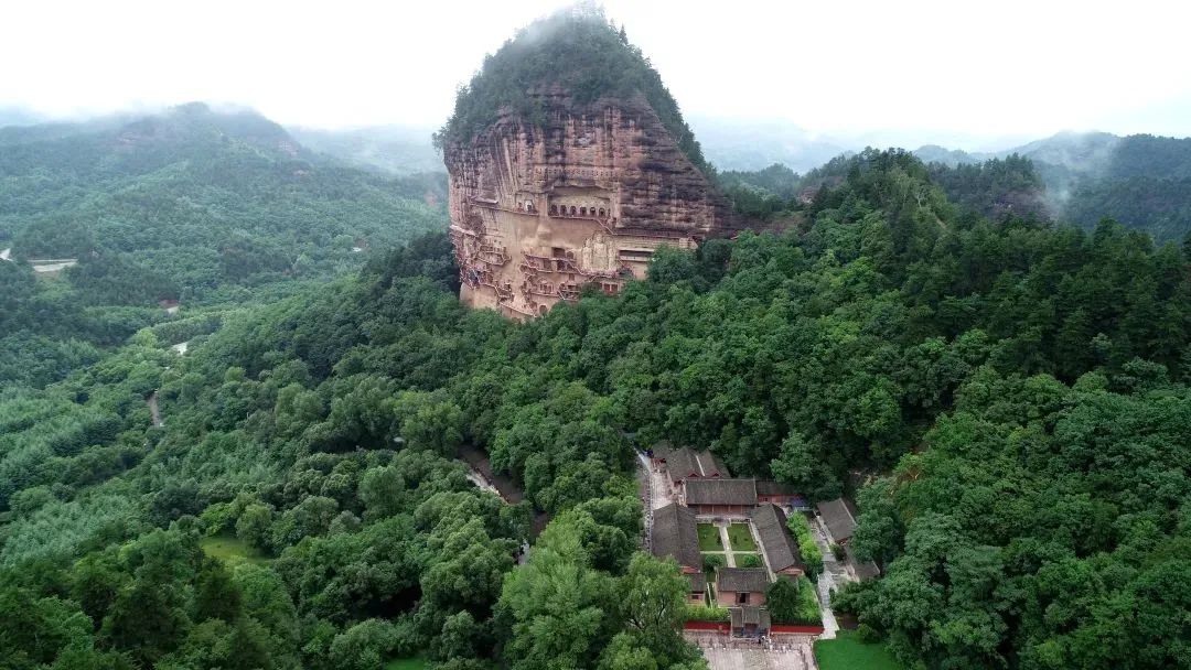 遠望麥積山石窟(麥積山石窟藝術研究所供圖)