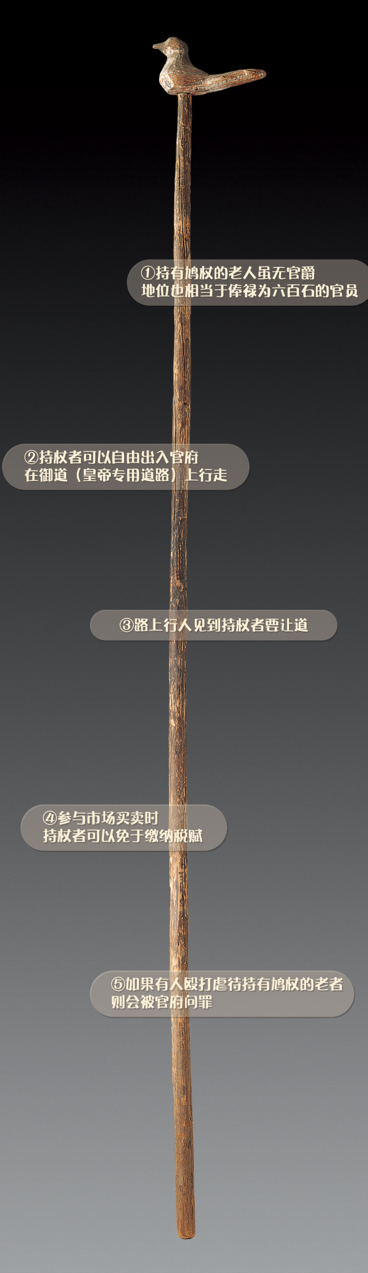 ①持有鳩杖的老人雖無官爵