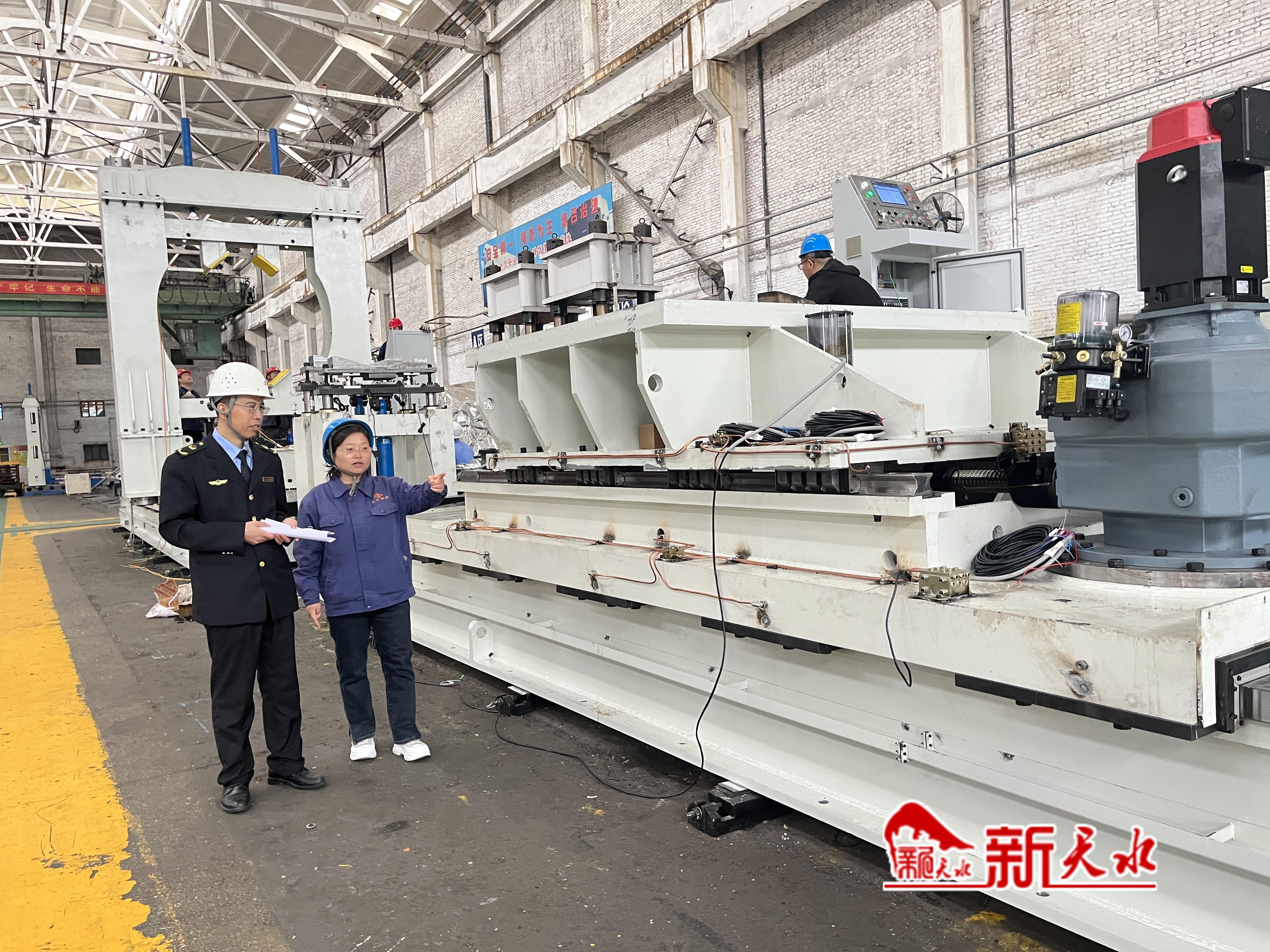 在天水鍛壓機床(集團)有限公司的生產(chǎn)車間里,工人們正在調(diào)試準備交付用戶的鋼管平頭倒棱機。鋼管平頭導倒機主要是對鋼管的兩個端頭進行切削,保證端面的平行度,為設備后續(xù)焊接做準備的設備。公司技術中心副主任袁鑫告訴記者:“這款產(chǎn)品從研發(fā)到生產(chǎn)制造歷時一年半的時間,這也是目前鍛壓公司生產(chǎn)的最大的一臺倒棱機。它最大可以加工直徑2.02米,長度是16米的鋼管,目前是在國內(nèi)的市場占有率超過60%。同時它還大大縮短了規(guī)格更換時間,節(jié)約了人力和物力。”記者了解到,這款鋼管平頭倒棱機是天水鍛壓機床(集團)有限公司完全具有自主知識產(chǎn)權的產(chǎn)品,同時該款設備采用新節(jié)能技術,比原有設備在能耗上面降低50%至60%。