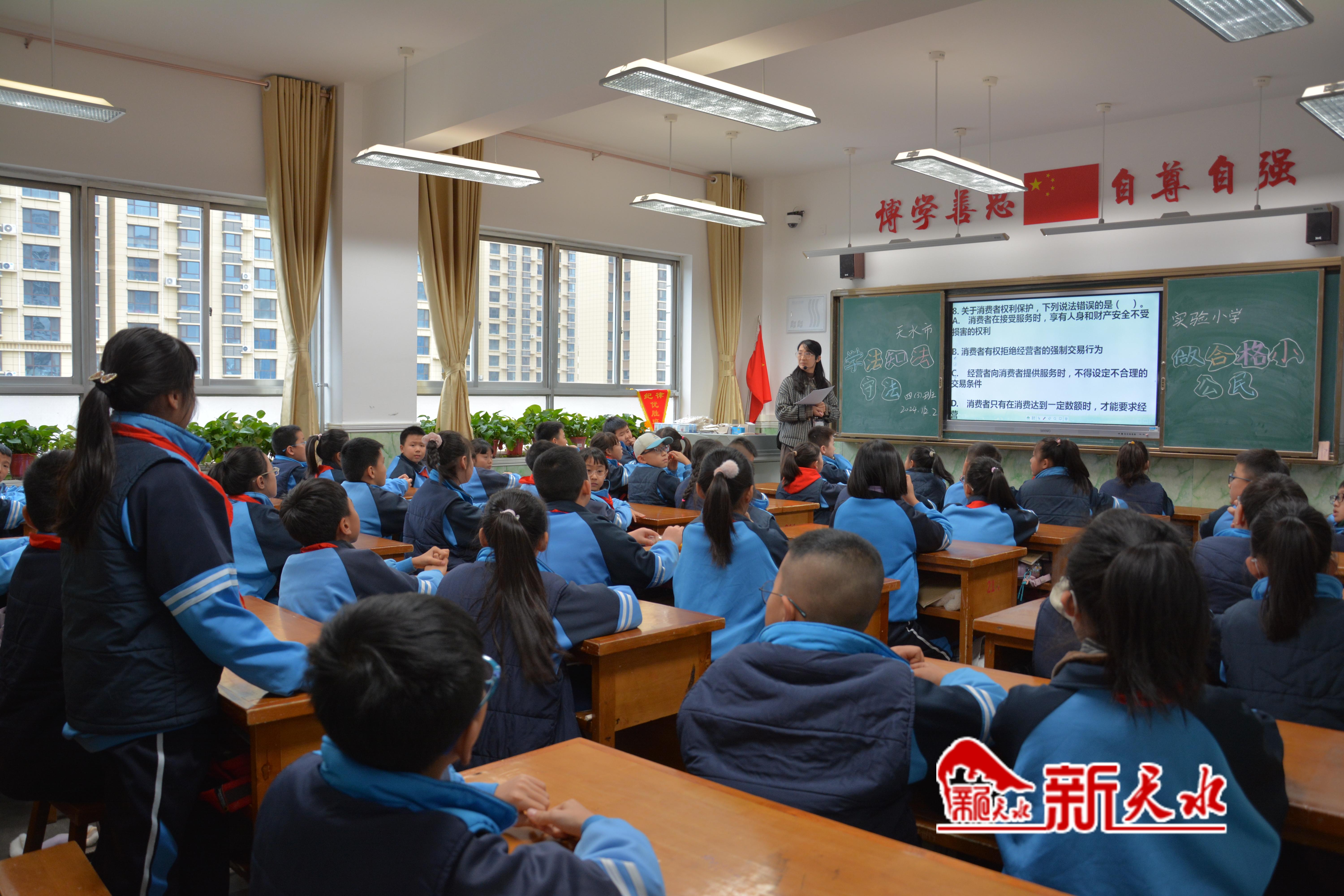 12月2日下午,在天水市實(shí)驗(yàn)小學(xué)四年級(jí)教室里,一場(chǎng)關(guān)于憲法的知識(shí)競(jìng)賽正有序進(jìn)行,孩子們信心滿滿舉手作答,將比賽一次次推向高潮。