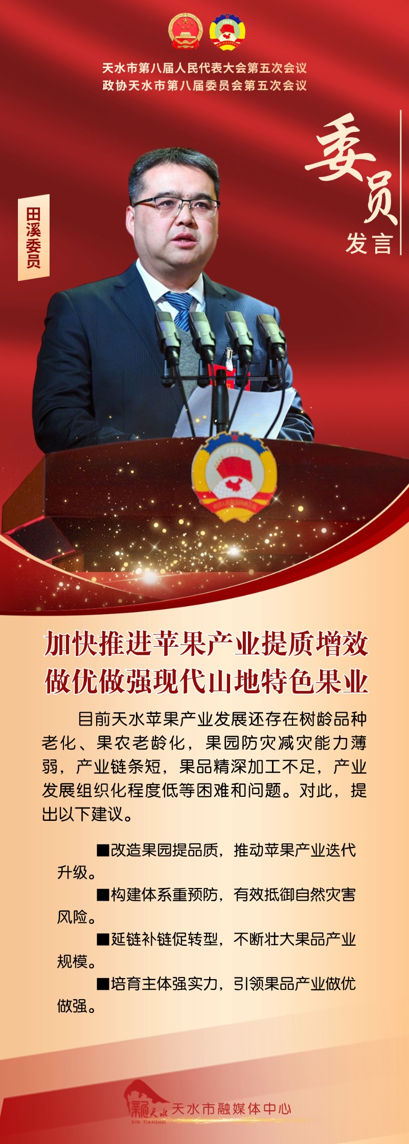 ?兩會海報丨田溪委員:加快推進蘋果產(chǎn)業(yè)提質(zhì)增效 做優(yōu)做強現(xiàn)代山地特色果業(yè)