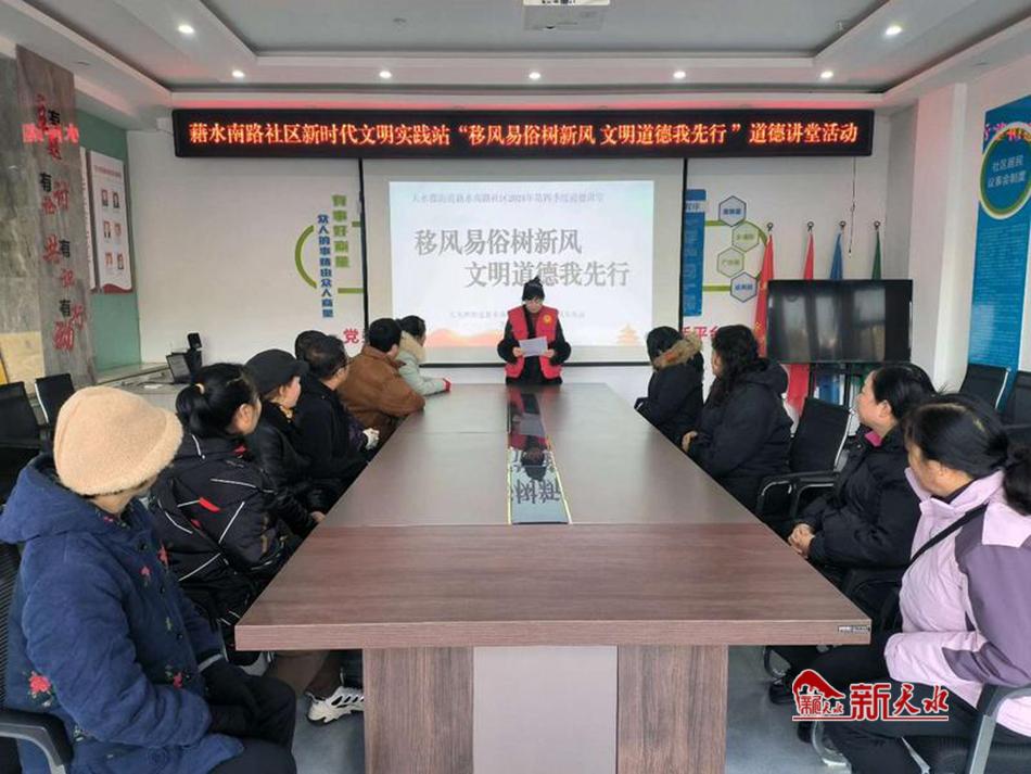 新天水訊 12月27日,秦州區(qū)天水郡街道藉水南路社區(qū)新時(shí)代文明實(shí)踐站舉辦了以“移風(fēng)易俗樹(shù)新風(fēng)、文明道德我先行”為主題的道德講堂,以進(jìn)一步推進(jìn)移風(fēng)易俗工作,樹(shù)立文明新風(fēng)。