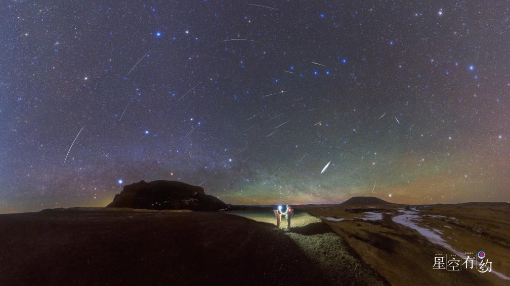 2022年1月4日在內(nèi)蒙古烏蘭哈達(dá)火山群拍攝的象限儀座流星雨(多張疊加)。(羅弘揚(yáng)攝,星聯(lián)CSVA供圖)