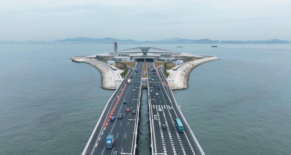 1月14日,深中通道上正在來往的車輛。(深中通道管理中心供圖)