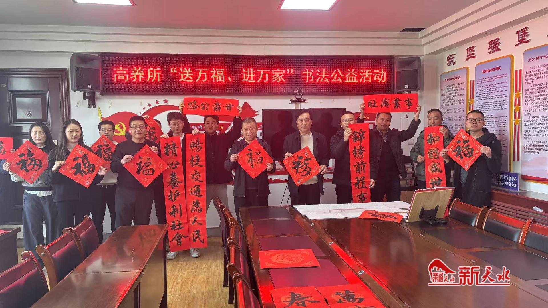 新天水訊【通訊員 蘇婷婷】臨近春節(jié),天水公路事業(yè)發(fā)展中心高養(yǎng)所舉辦了“送萬福、進(jìn)萬家”書法活動(dòng),為廣大職工送上誠摯的新春祝福,增添春節(jié)節(jié)日濃厚氛圍。