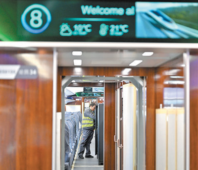 工作人員在CR450動車組樣車內(nèi)部進(jìn)行試驗驗證。