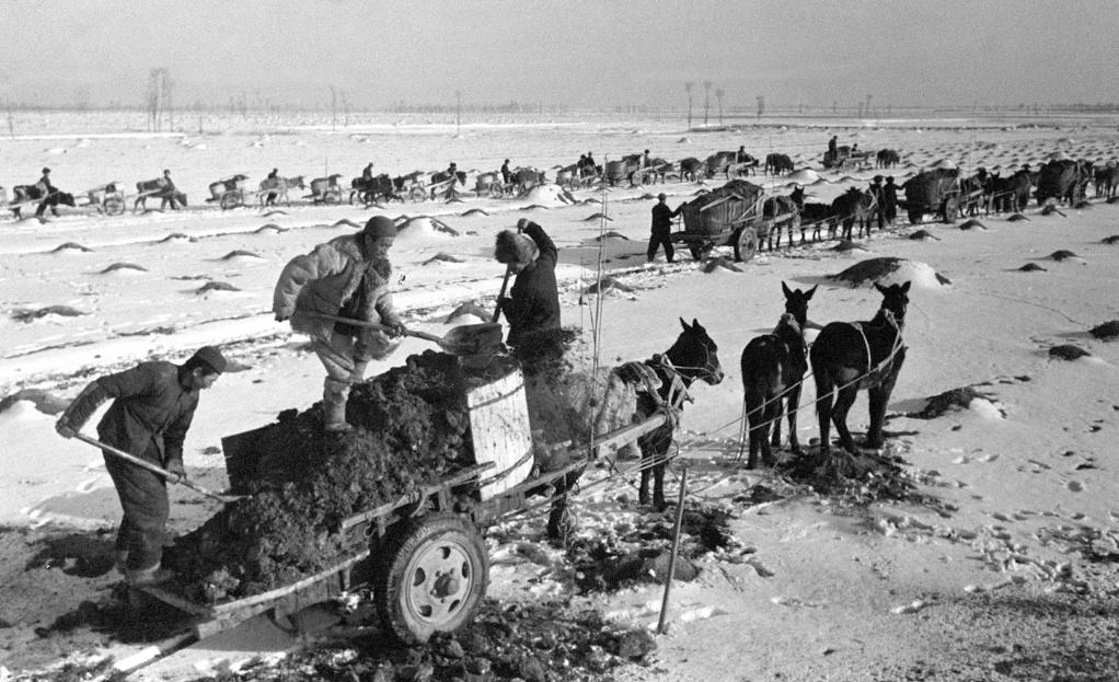 1971年3月,在山西北部地區(qū),農(nóng)民往地里送肥備耕(資料照片)。新華社記者 游云谷 攝